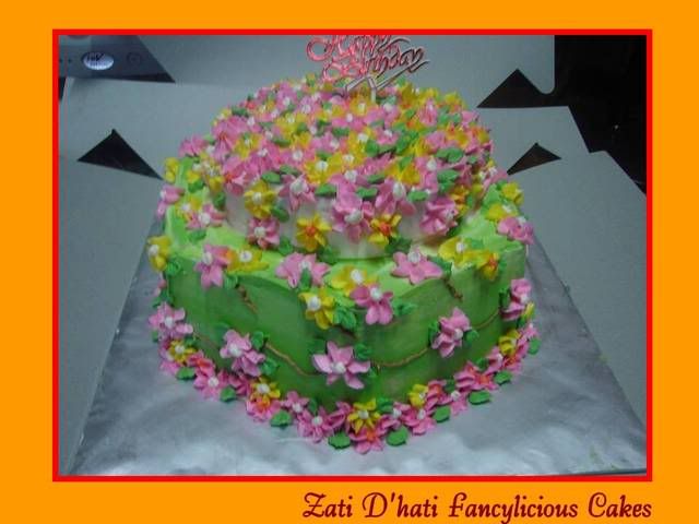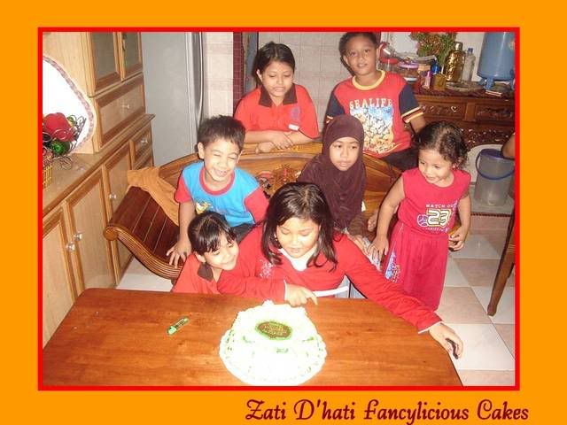 Terkilan sungguh. Azzahra membuat permintaan kek khas untuk diraikan di sekolahnya. Malangnya ketika bangun pagi hendak mengeluarkan dari chiller, malang berlaku. Aku terpaksa membuat deco drastik yang merubah sama sekali bentuk asalnya.Masa ada limabelas minit untuk ke sekolah. Mahu tak mahu, noozle 2D dan 29 jadi pilihan mendeko. Inilah deco drastik 17 mac 2008.